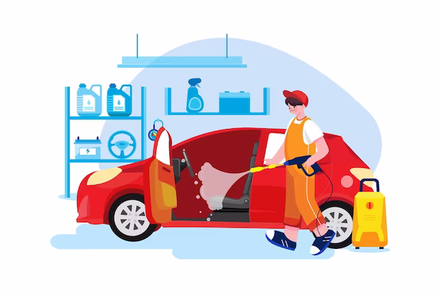 The driver ensures meticulous rinsing & cleaning of the vehicle.